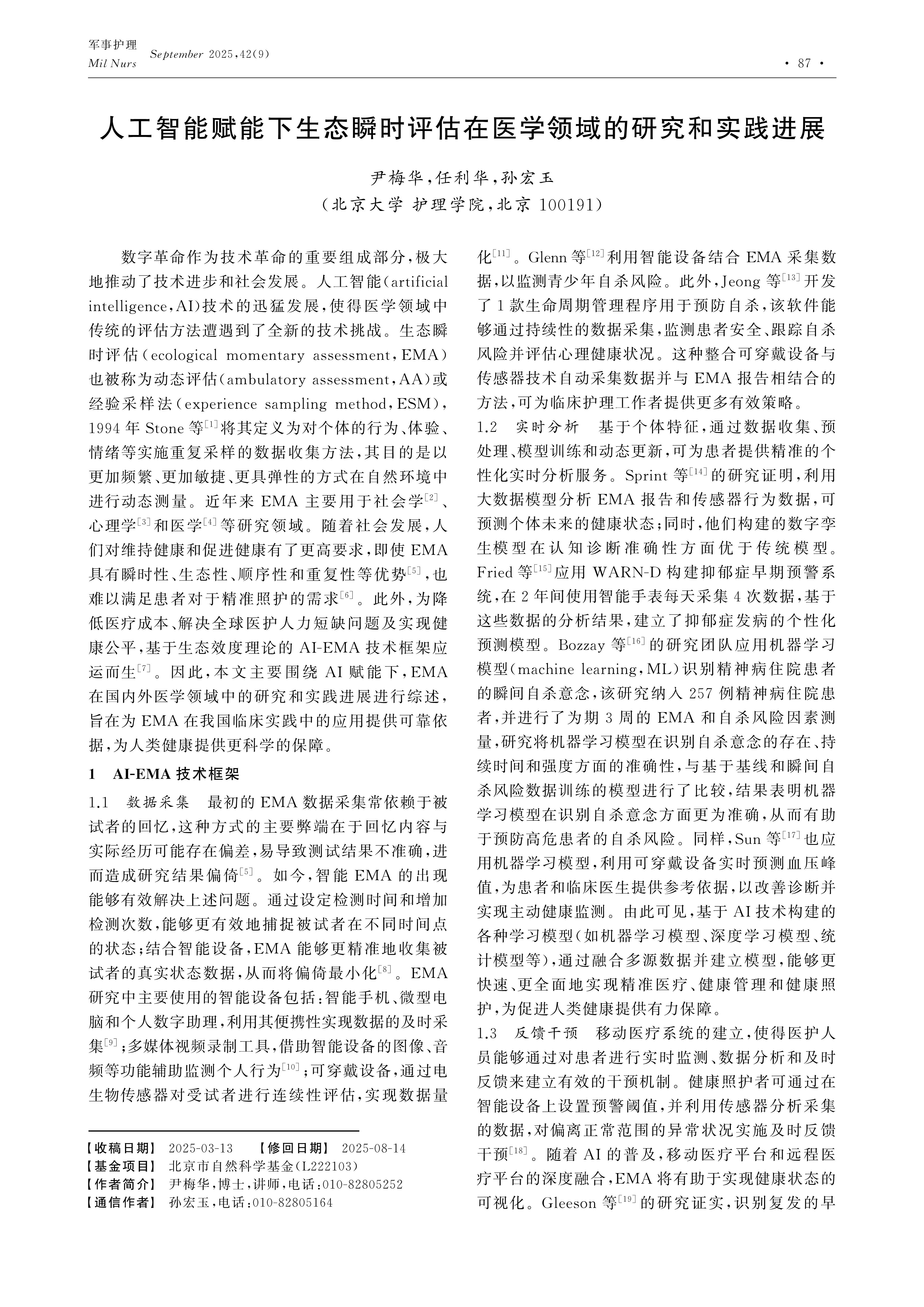 人工智能赋能下生态瞬时评估在医学领域的研究和实践进展