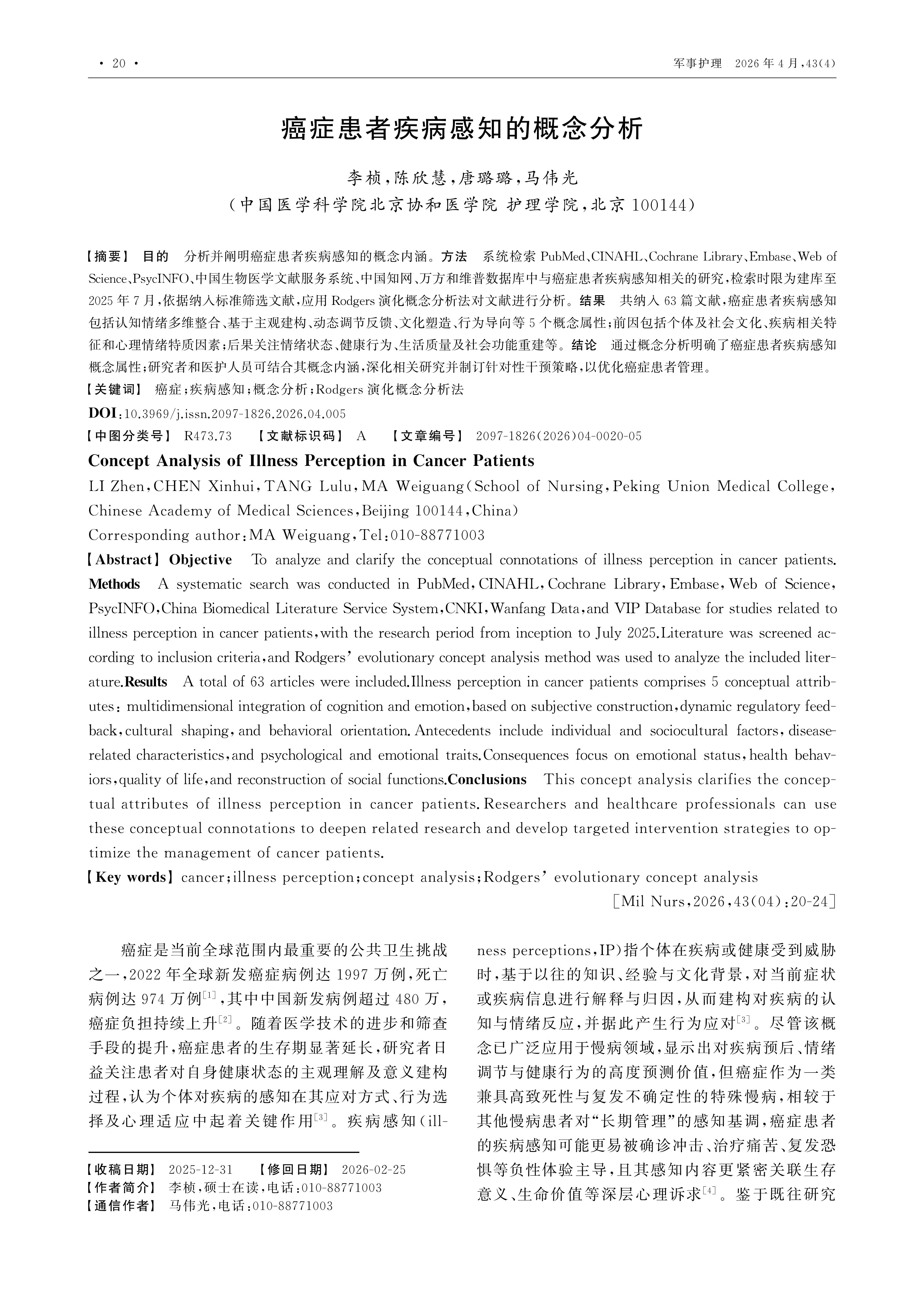 癌症患者疾病感知的概念分析